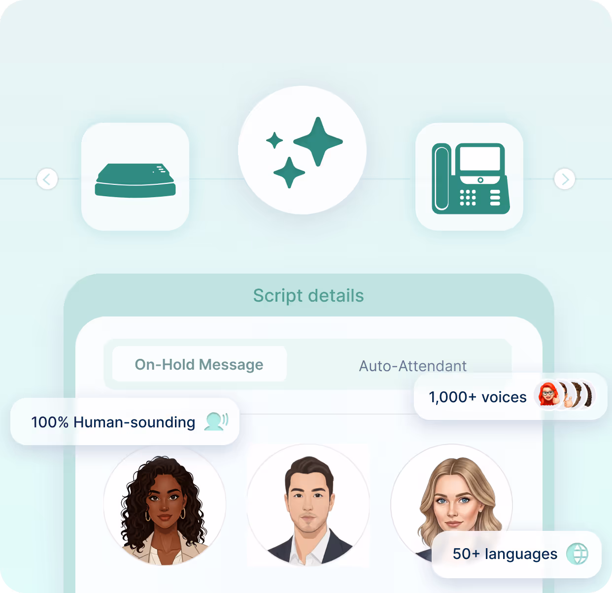 Thousands of AI voices across languages and tones to match your brand.
